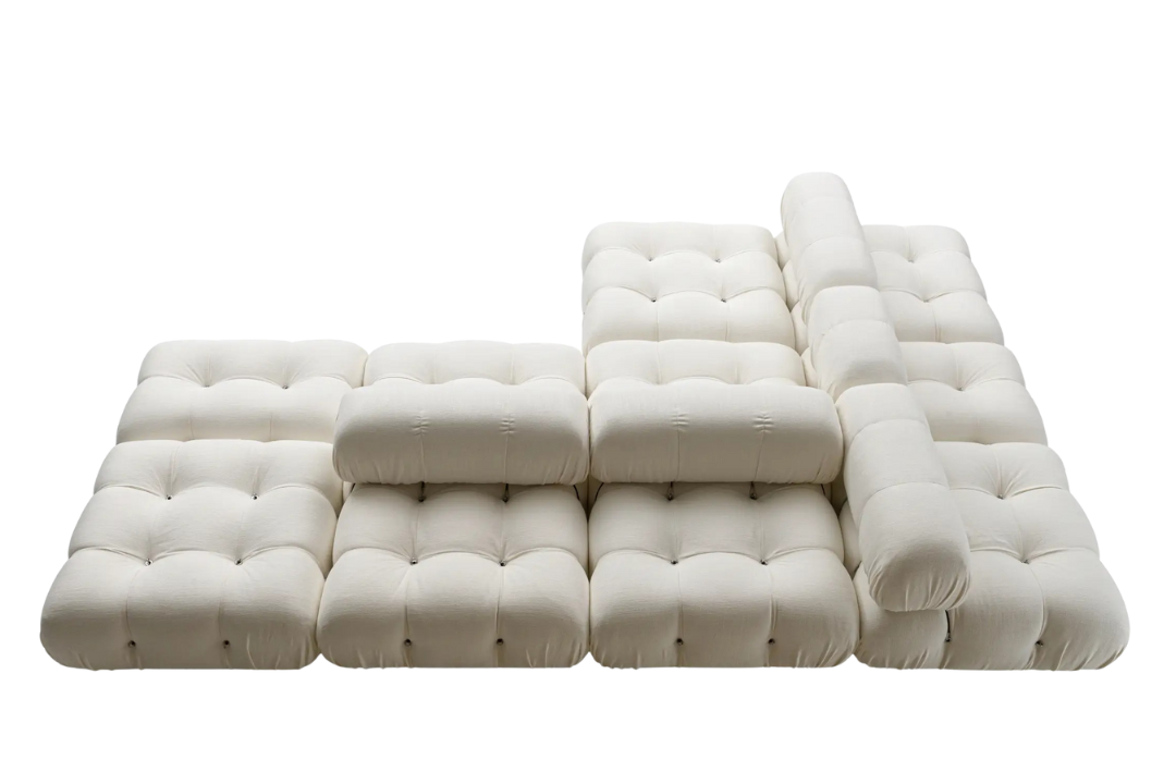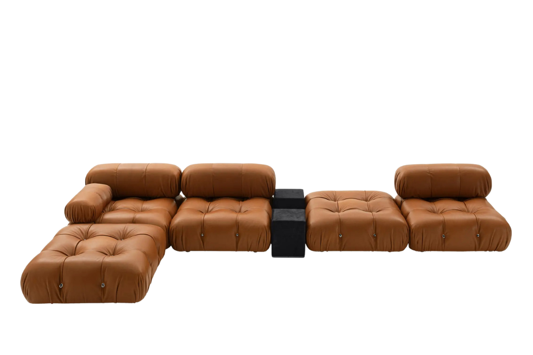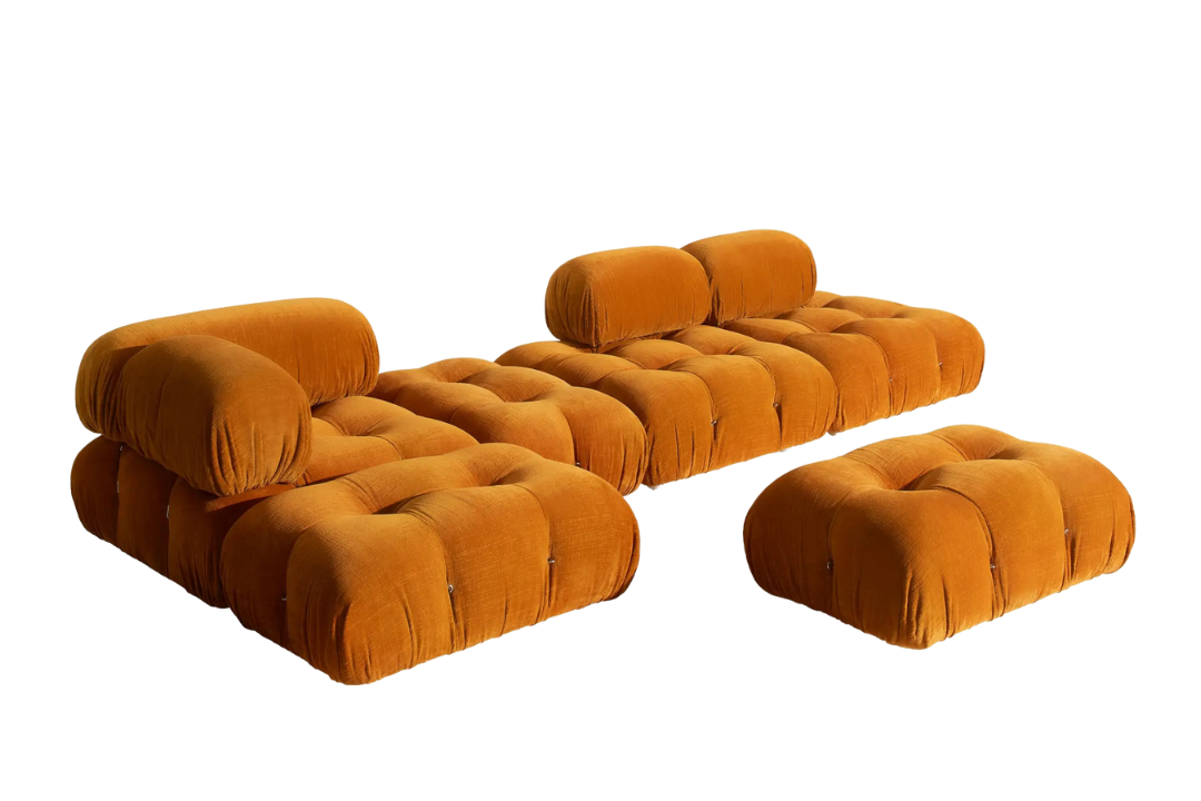 The Camaleonda sofa features an innovative “sandwich” structure made from easily disassembled layers of recycled and recyclable materials. Its wooden core, combined with multi-density polyurethane padding, creates a spring-like comfort and makes the sofa both durable and eco-friendly. Designed for complete modularity, each element acts as a geometric unit that can be freely rearranged using tie-rods and rings, allowing endless configurations to suit changing spaces and tastes while preserving its distinctive character.