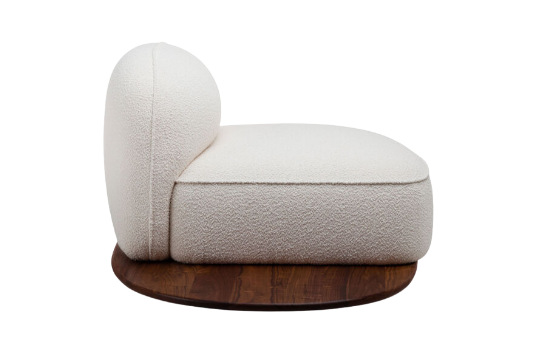 The Azores Armless Lounge is part of a sculptural collection of sofas and small tables designed as flexible islands that can be arranged to suit any space. Each piece features soft, rounded forms crafted from luxurious upholstery paired with rich solid wood accents. The Faial variation is available armless, or with a timber base on either the right or left side, and can also include a single arm with the timber base positioned as desired. Every unit comes with one square scatter cushion, allowing you to create personalized, inviting configurations tailored to your interior.