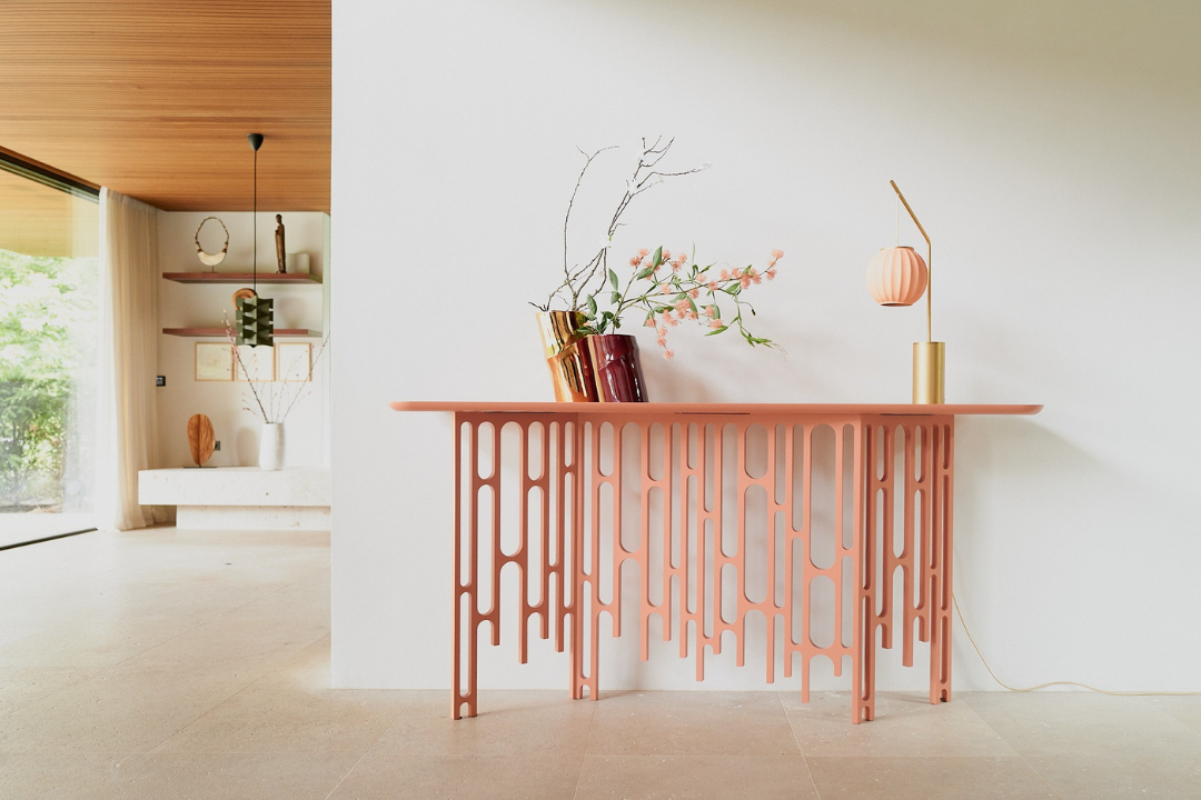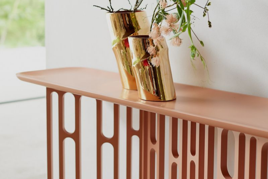 Base made of high-density fiberboard Compact Plus (oak veneer, walnut veneer, or lacquer: 3 finishes); top made of water-resistant medium-density fiberboard.