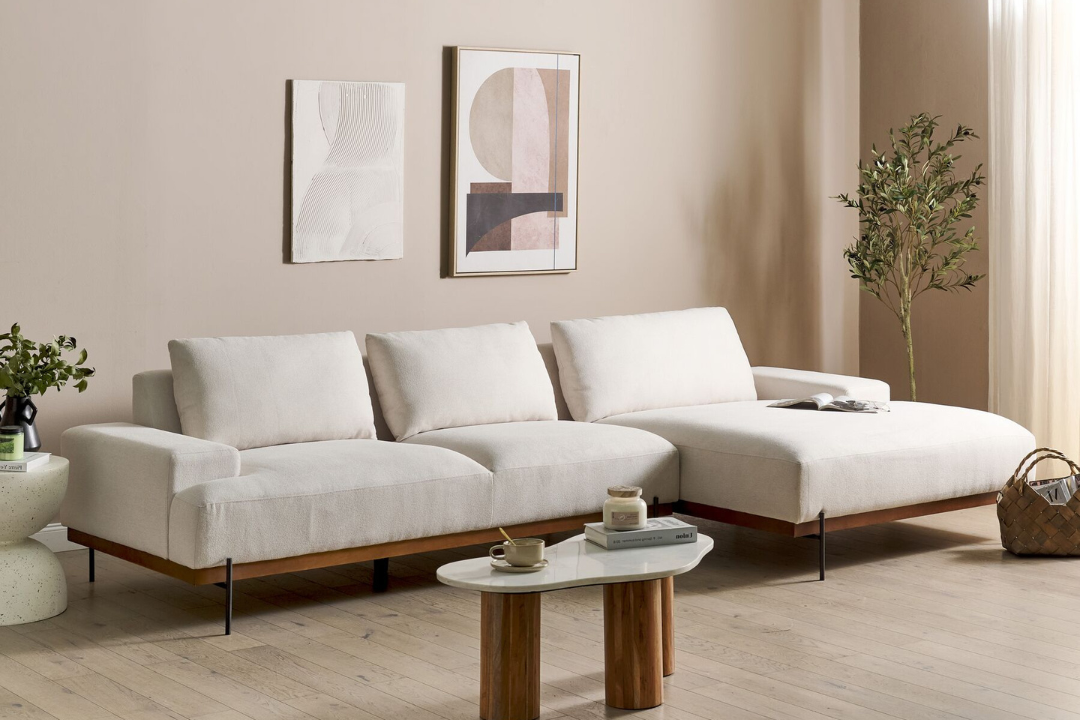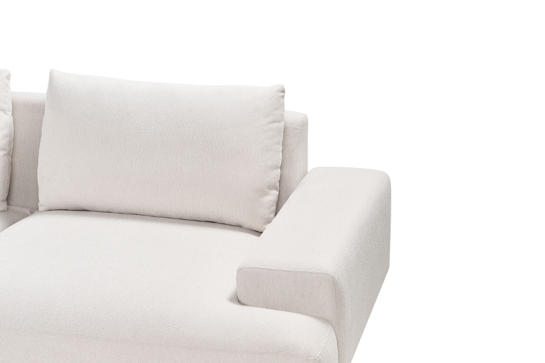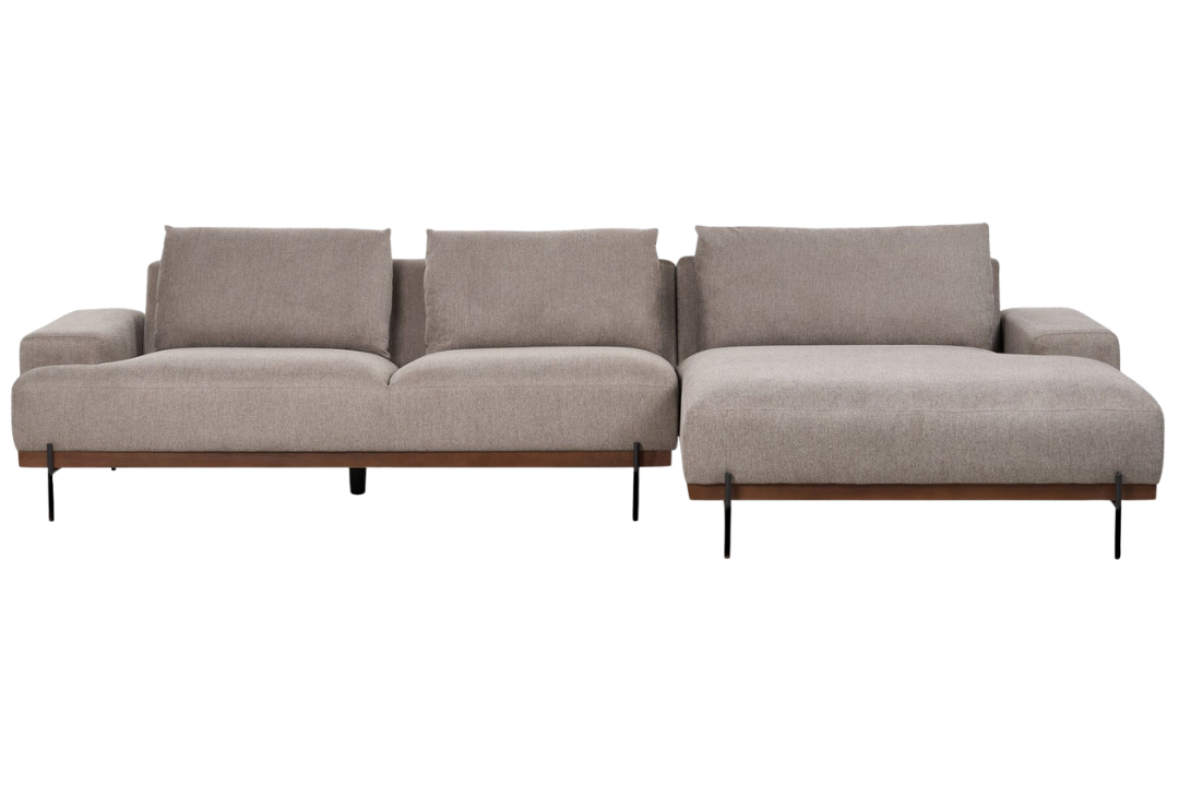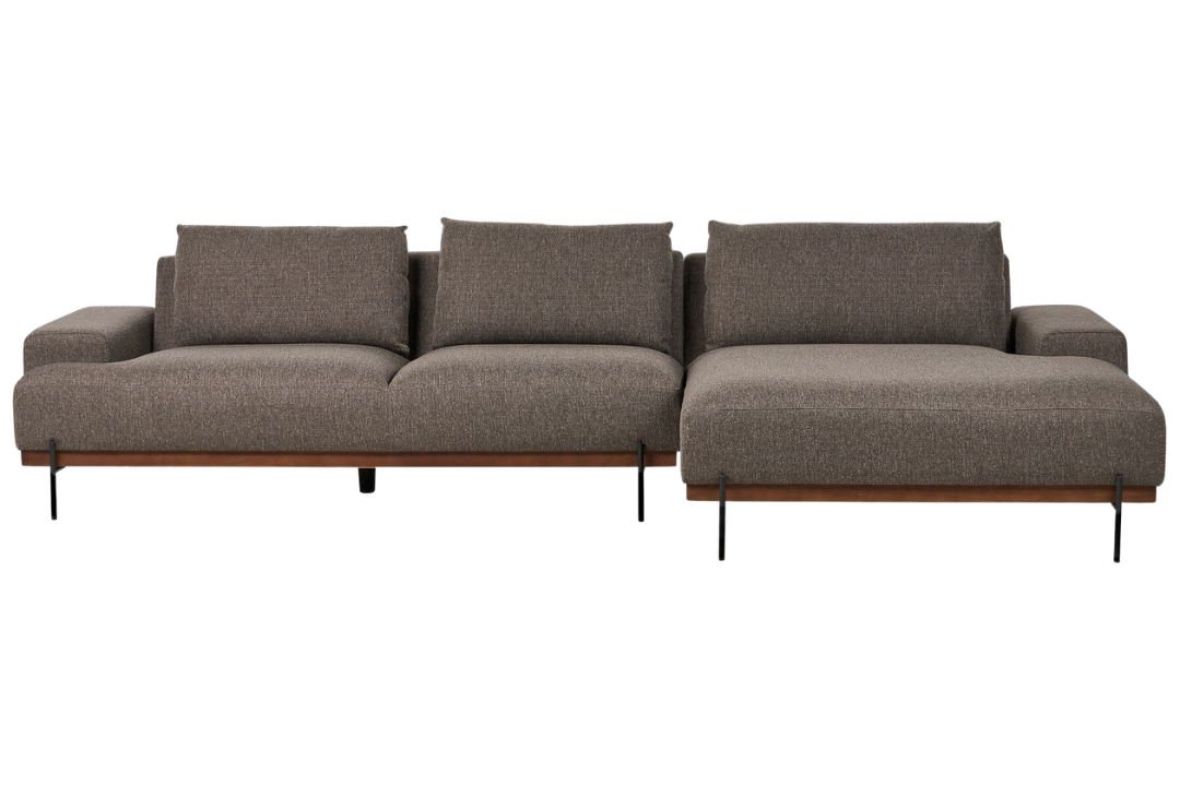 This minimalist corner sofa combines simplicity with exceptional comfort. Designed with low track armrests and a supportive backrest fitted with three plush cushions, it creates an inviting space for relaxation. The chaise section provides an ideal spot to stretch out and unwind, while the slim metal legs add a touch of visual lightness and modern elegance, making it a perfect addition to any contemporary home.