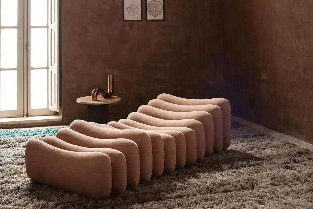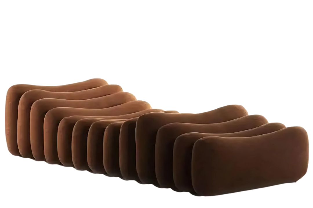 The Fabric Chaise Longue, originally designed by Joe Colombo in 1967 and reissued by Tacchini, remains a symbol of futuristic and flexible design. This modular seating system features cushions in six different sizes, allowing endless configurations inspired by the dynamic spirit of the 1960s. The collection includes an armchair, pouf, and chaise longue, all crafted with variable-density polyurethane foam padding and removable covers for comfort, adaptability, and timeless style.