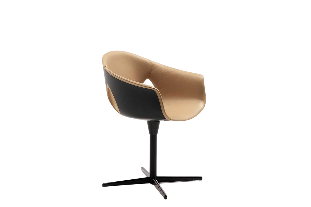 The Ginger Ale armchair pairs modern elegance with practical comfort. Its painted steel column base is available in either a fixed or swivel version, complete with a shock absorber and an automatic return mechanism for smooth, effortless movement. The chair can be fully upholstered for a seamless, refined look or styled with a soft upholstered interior and a painted outer shell for a striking contrast. Ideal for both home and commercial spaces, it offers durability, comfort, and contemporary appeal.