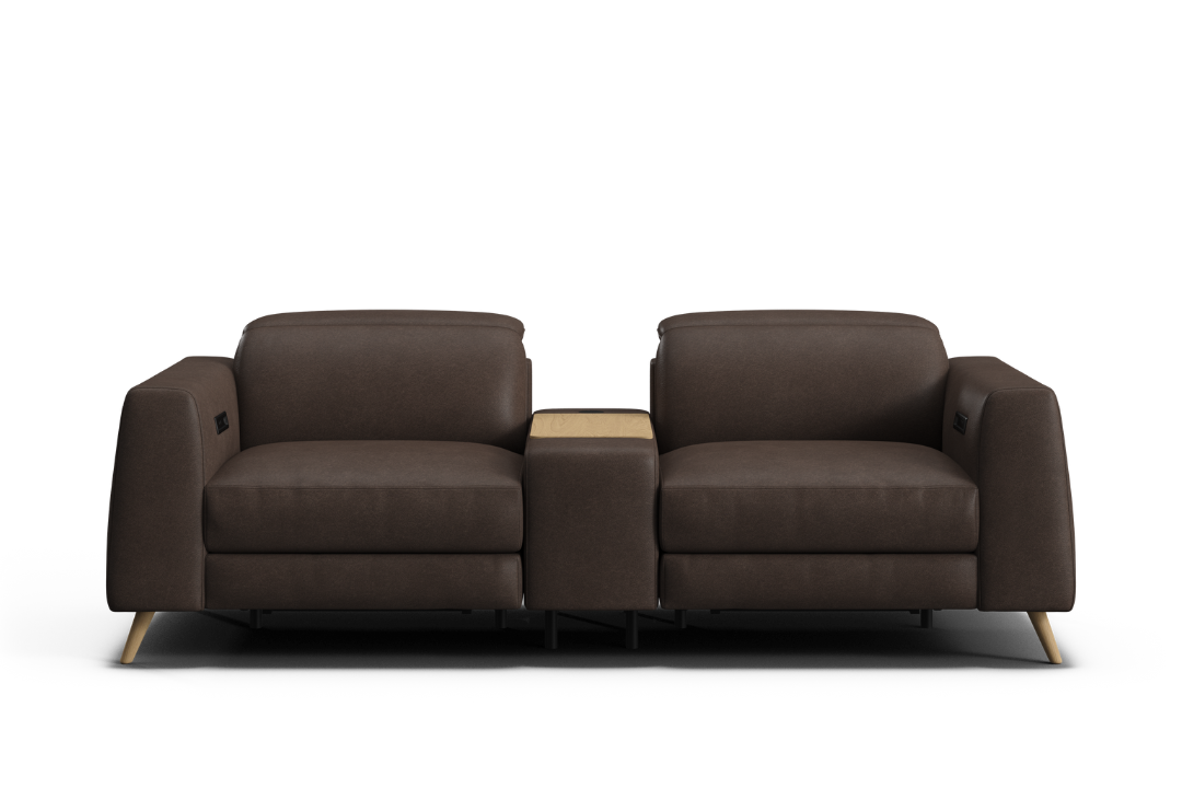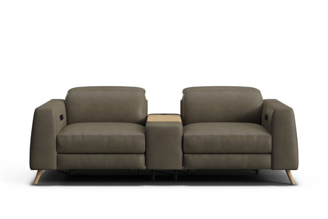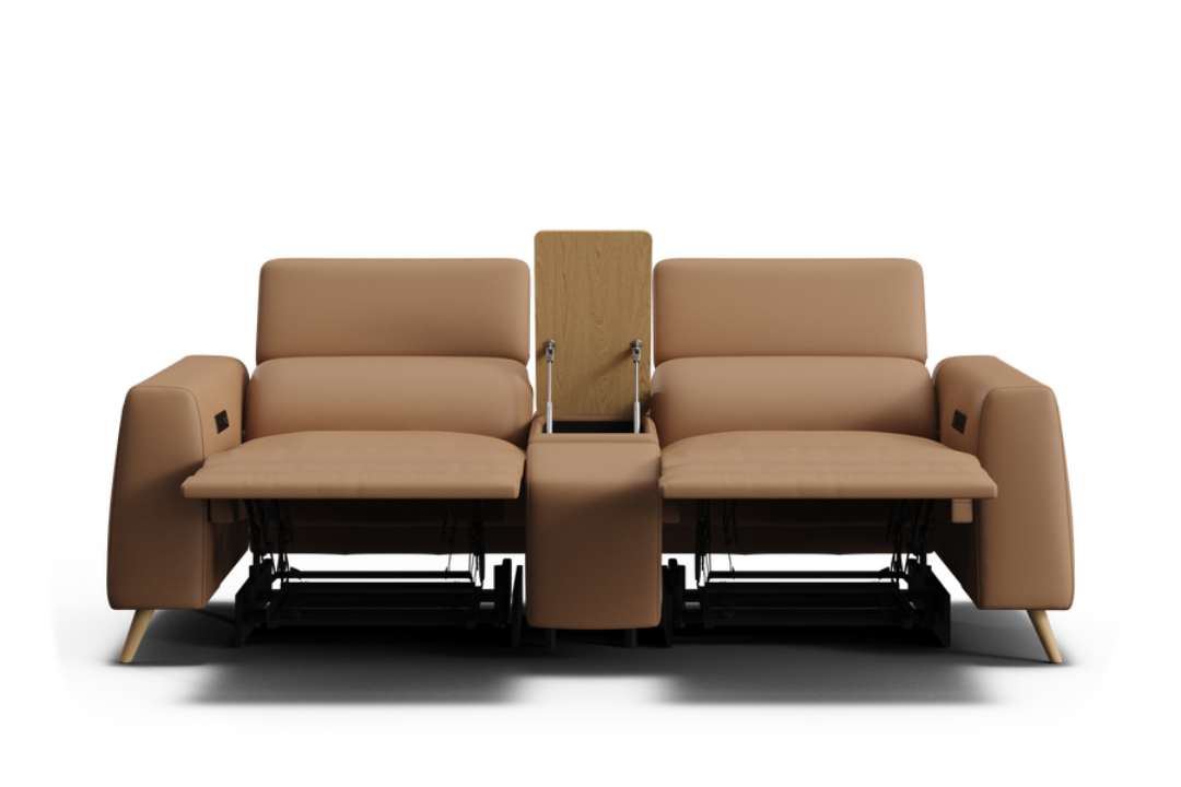 The Huntah Powered Recliner is a modern reinterpretation of the traditional recliner, blending clean, classical styling with advanced functionality. Its contemporary box-shaped profile, framed by wide tapered arms and ultra-soft cushions, offers both comfort and support, while the 100% leather upholstery enhances its luxurious appeal. Featuring zero-gravity reclining and adjustable headrests, Huntah delivers superior relaxation and ergonomic alignment. The discreet side control panel operates the recliner and includes Type-C and USB charging ports for convenience. An optional console adds even more functionality with a wireless charging pad, storage compartment, and retractable drink holders. Supported by elegant grey-wash timber legs, the Huntah recliner perfectly balances timeless sophistication with modern innovation.