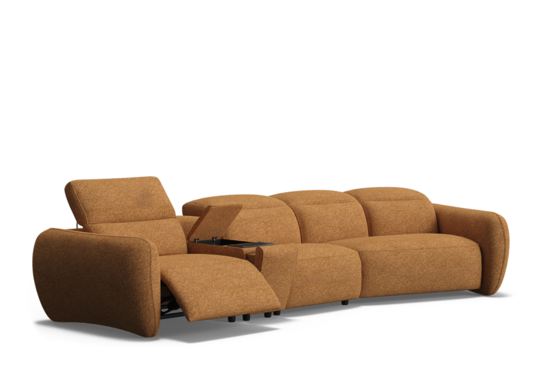 The Jaeger Sofa redefines relaxation with its oversized, deep, and spacious seating designed for ultimate comfort. Featuring a unique cuddler section made for two, it’s perfect for cozy moments or shared lounging. The advanced zero-gravity recliner mechanism elevates your legs above heart level, promoting circulation, reducing joint pressure, and delivering exceptional lumbar support. Power footrest and headrest controls are discreetly hidden on the side for a clean, minimal look. Built with no-sag sinuous springs, high-density foam, and a soft duvet wrap of 30% feather and 70% polyester fiber, the Jaeger offers luxurious support from seat to headrest. An optional console adds convenience with electric-powered drink holders, wireless charging, USB and Type-C ports, and hidden storage. Upholstered in a plush Summer bouclé-style fabric available in a wide range of trendy colors, the Jaeger Sofa blends modern design, comfort, and functionality effortlessly.