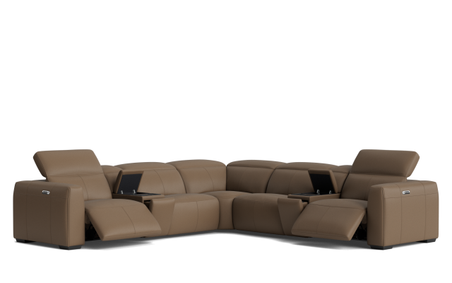 Discover endless relaxation with the Norfolk modular electric reclining lounge. With its curvilinear armrests, supportive backrests, electric headrests, electric footrests and luxurious buttery-soft New Georgia leather, Norfolk will exceed your expectations. For customised comfort, add storage consoles, wireless charging plates and retractable drink holders. Available in a range of quality leathers and colours.