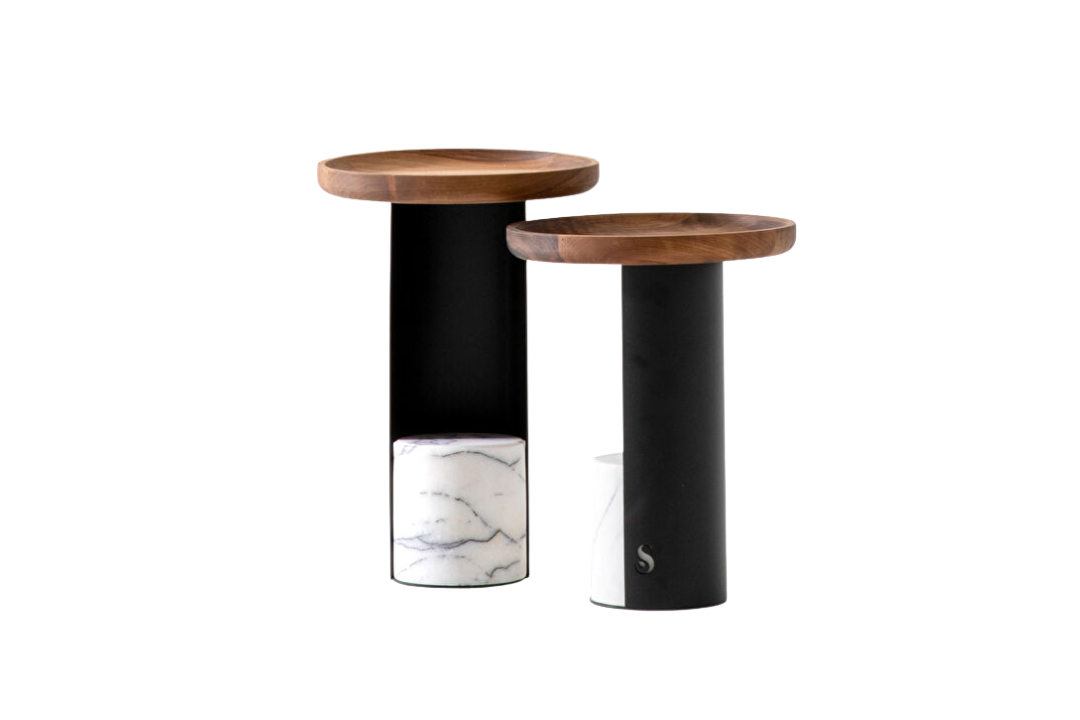 The Ritz Nesting Table Set blends a minimalist silhouette with luxurious material combinations. Featuring a natural solid walnut top, a powder-coated metal frame, and striking marble block details, it brings warmth and sophistication to modern living spaces. Its dual-height design offers flexibility and versatility, allowing the tables to be used together or separately to suit different layouts and needs.