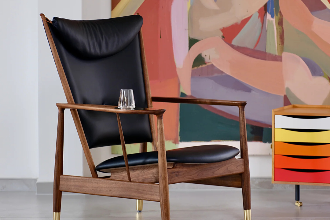 The 57 Sofa is a timeless piece designed by Finn Juhl in 1957, reflecting his signature sculptural aesthetics. This sofa features elegantly curved armrests and a unique floating backrest design, offering a balance between comfort and artistic expression. The sofa’s construction ensures ergonomic support while maintaining a light and airy appearance. Perfect for contemporary and modern interiors, it is a statement piece that embodies Scandinavian craftsmanship.